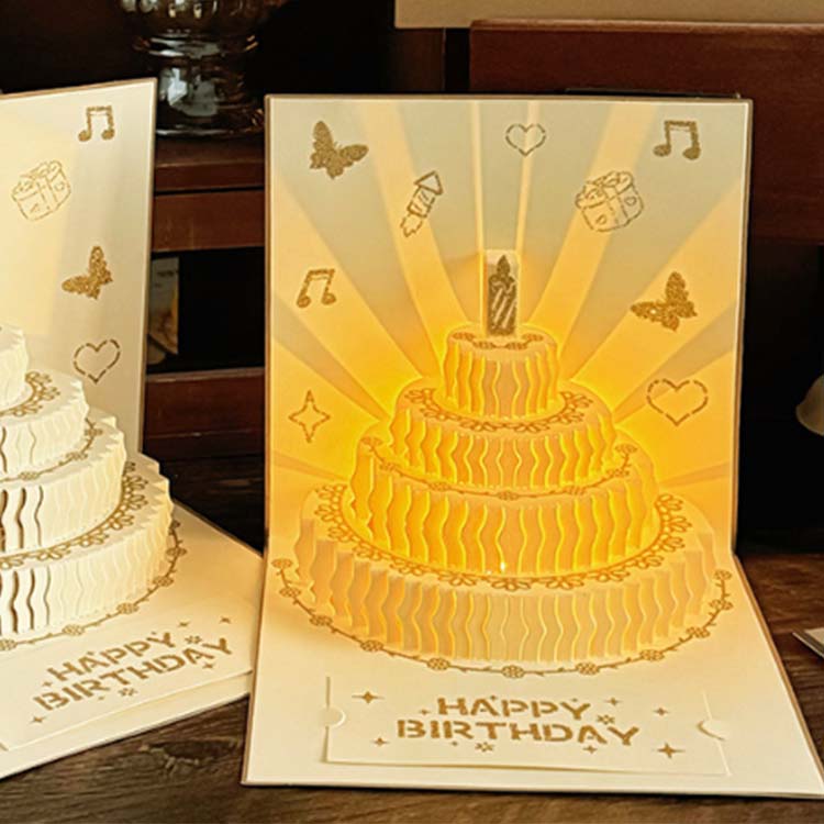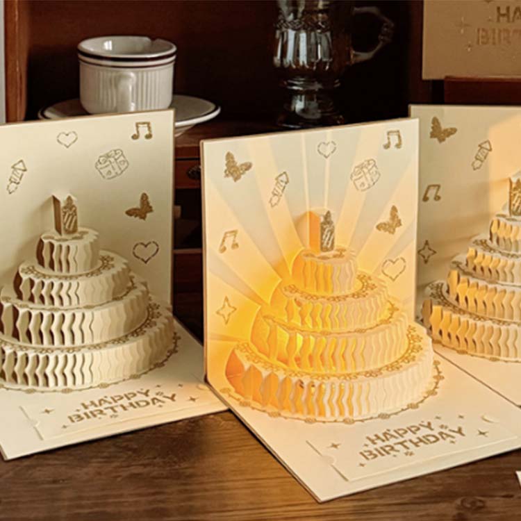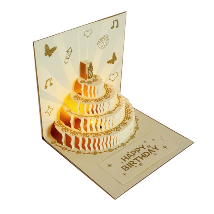 3D سالگرہ کارڈ میں الیکٹرانک اجزاء شامل ہیں ، جس میں لائٹنگ اور میوزک اثرات شامل ہیں۔ یہ استعمال کرنا آسان ہے۔