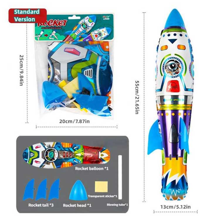 تھری ڈی راکٹ ورق کا غبارہ پھینکنے والا انفلٹیبل پھینکنے والا ایک لمبا ، فاسد شکل والا انفلٹیبل کھلونا ہے جس کی سطح پر چھپی ہوئی راکٹ سے متعلق نمونوں کے ساتھ۔ سر اور دم کے پنکھوں کو ہاتھ سے جمع کرنے کی ضرورت ہے ، اور پھر فلایا ہوا کے بعد ، یہ آسانی سے ٹوٹا ہوا ہے اور پائیدار ہے۔