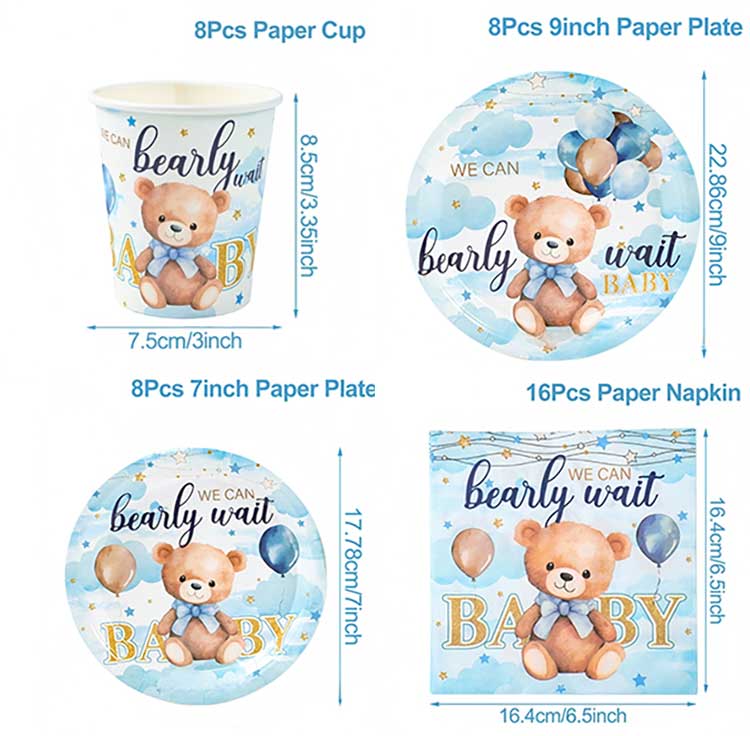 بچے کی سالگرہ کے ڈسپوزایبل پلیٹ سیٹ میں دیگر لوازمات شامل ہیں: