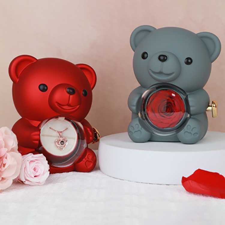 یہ Hug Bear Rose Jewelry Box ڈیسک، بک شیلف، یا پلنگ کی میز پر ڈسپلے کے لیے استعمال کیا جاتا ہے۔ اس کی سب سے زیادہ دلکش خصوصیت مرکز میں محفوظ گلاب ہے۔ گلاب کو کھولنے سے زیورات، انگوٹھیوں یا کیپ سیکس کو ذخیرہ کرنے کے لیے ایک ٹوکری کا پتہ چلتا ہے۔