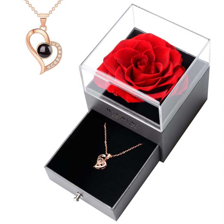 اممورٹل فلاور گفٹ باکس میں موجود زیورات بھی ہمارا خصوصی ڈیزائن ہے۔ ہم نے زیورات کے اس ٹکڑے کے لیے تین مرکزی رنگوں کو ڈیزائن کیا ہے: سونا، چاندی اور گلاب گولڈ۔ یہ اعلی صحت سے متعلق الیکٹروپلٹنگ ٹیکنالوجی کا استعمال کرتے ہوئے بنایا گیا ہے، اس بات کو یقینی بناتا ہے کہ یہ طویل مدتی پہننے کے بعد بھی دھندلا یا زنگ نہیں لگے گا۔ زیورات میں موجود ہیرے 5A گریڈ کے زرکونیم سے بنے ہیں، اور 20 سال کے تجربے کے ساتھ ڈیزائنر نے نہایت احتیاط سے ترتیب دی ہے۔