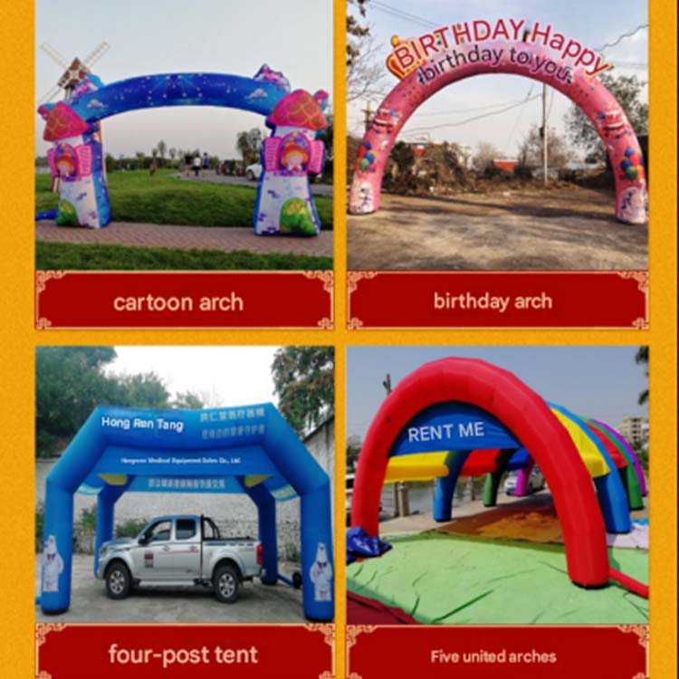 سائز اور شکل: مختلف قسم کے سائز اور ڈیزائن میں دستیاب ہے - کلاسیکی مڑے ہوئے محراب ، کسٹم شکلیں (جیسے لوگو ، کارٹون کردار) ، ڈبل انفلٹیبل محراب یا تیمادیت والے انداز (شادی ، کھیل ، تہوار)۔