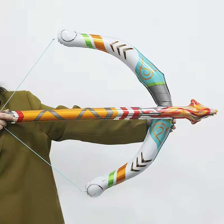 انفلوٹنگ: انفلٹیبل بو اور تیر کھلونا اپنے منہ یا ایک چھوٹے سے ہوا پمپ (عام طور پر شامل نہیں) کا استعمال کرتے ہوئے مکمل طور پر سیٹ کرتا ہے۔
