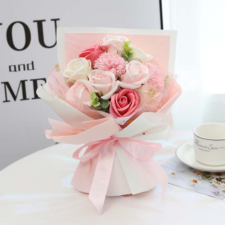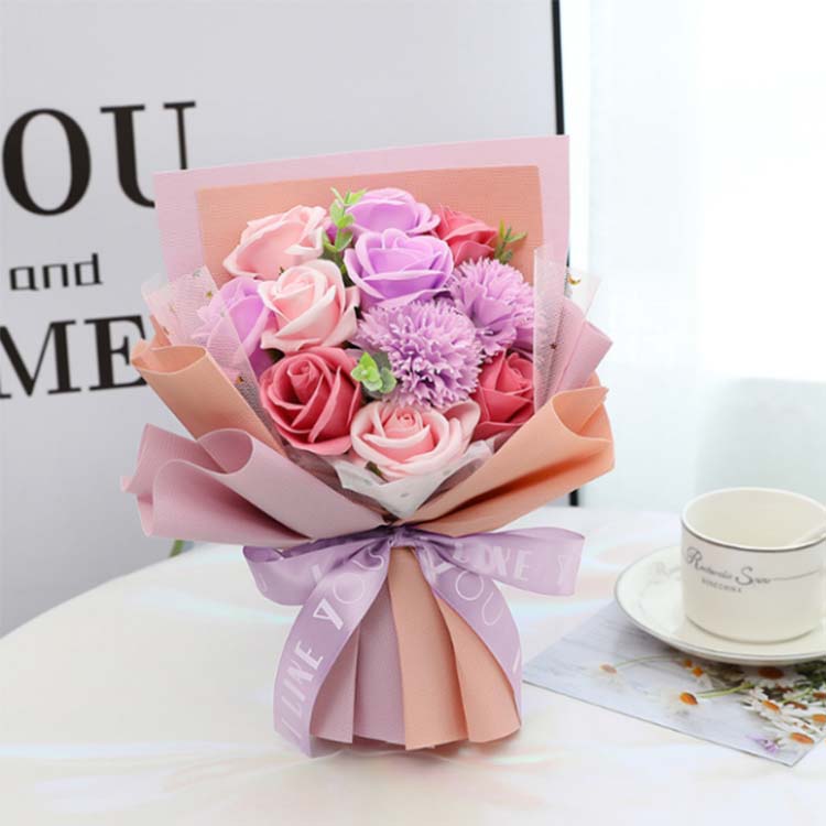 صابن کے پھولوں کا گلدستہ مصنوعی پھولوں کی آرٹ کا ٹکڑا ہے جو دستی تشکیل کے ذریعہ قدرتی صابن کی بنیاد سے بنایا گیا ہے۔