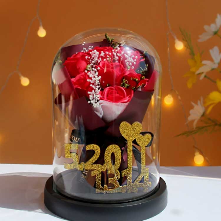یہ شیشے کے گلاب کے گلدستے کو پھولوں کو مرجھانے سے روکنے کے لیے ڈیزائن کیا گیا ہے، اور اس کے اندر کے گلاب ختم نہیں ہوں گے۔ گلدستہ بہت جاندار ہے، حقیقی پھولوں سے تقریباً پہچانا جا سکتا ہے، اور یہ گلدستے کی خوبصورتی کو بہت اچھی طرح سے پیش کر سکتا ہے۔ اندر، سنہری نمبر 520+1314 نمبر 520 اور 1314 کی نمائندگی کرتے ہیں، جو محبت کی علامت ہیں اور اس تحفے کی سوچ کو اجاگر کرتے ہیں۔