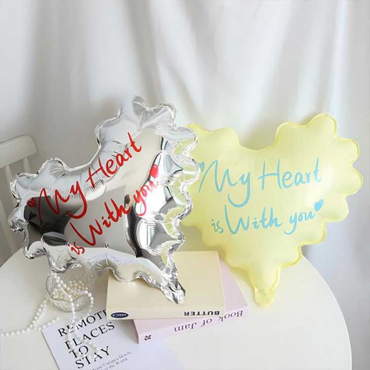 1. منفرد ڈیزائن: لہراتی کنارے دل کی کلاسک شکل میں تخلیقی موڑ ڈالتے ہیں، جس سے یہ ایک معیاری غبارے سے الگ ہوتا ہے۔